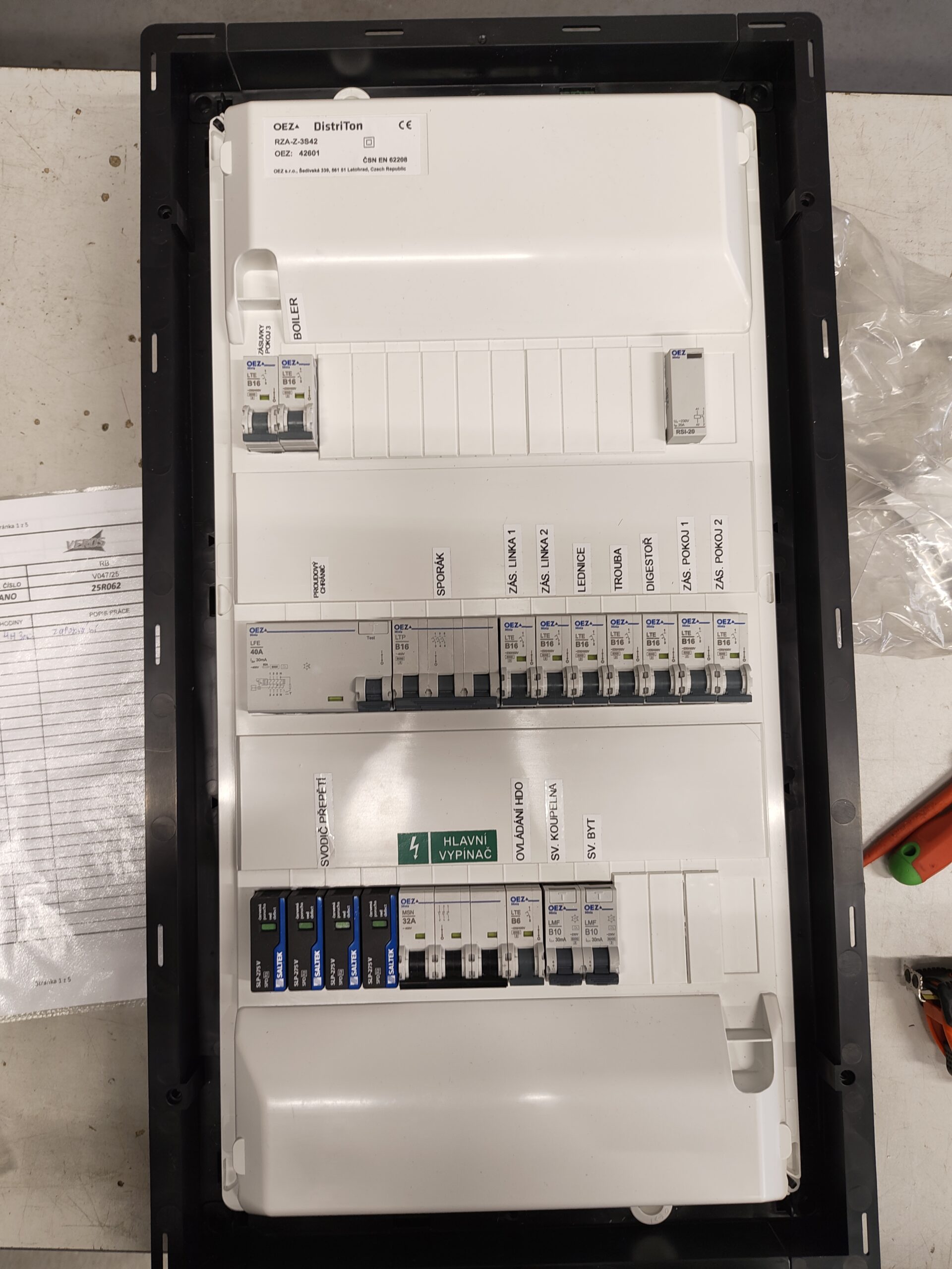 - Rozváděče jsou určeny pro elektroinstalace bytů a rodinných domů. Sestávají se převážně z plastových nebo oceloplechových skříní OEZ (typu RZA, RZI, RZB a RZG). Na přání zákazníka jsme schopni vyrobit rozvaděč z komponent jineho výrobce.